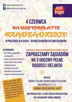 Udział w imprezie jest darmowy. Dzień Dziecka na osiedlu Westerplatte to także inauguracją projektu Tarnowskie OSIE D’LOVE. Podczas imprezy będzie prowadzona zbiórka publiczna na realizację działań w ramach projektu.