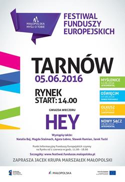 W niedzielę, 5 czerwca, Tarnów będzie gospodarzem pierwszej odsłony tegorocznej edycji Festiwalu Funduszy Europejskich „Małopolska myśli o Tobie”. Impreza rozpocznie się na płycie Rynku o godzinie 14.00, a jej finałowym akcentem będzie koncert zespołu HEY.