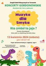 Zespół Szkół Muzycznych w Tarnowie zaprasza dzieci do lat 3 wraz z rodzicami na kolejne koncerty gordonowskie. Zajęcia odbędą się w sobotę, 13 kwietnia, w foyer sali koncertowej ZSM przy ul. Lippóczy’ego 4 o godzinie 9.30 i 11.00. Koncerty „Muzyka dla smyka – Kto zniósł to jajo?” poprowadzi jak zwykle Monika Zębaty. Będą one miały charakter charytatywny, uzbierane datki przeznaczone zostaną na rehabilitację Marcelka Kubisa.