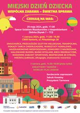 Kulminacja dziecięcych wydarzeń to oczywiście sobota, 1 czerwca. O godzinie 11.00 pojawią się tam dmuchańce, trampolina, przejażdżki złotym meleksem, pokazy tańca, warsztaty koralowe, konkursy z nagrodami, malowanie buziek i bańki mydlane. Będzie też można uczestniczyć w biegach rekreacyjnych i rodzinnych zabawach sportowych. Straż Miejska będzie rozdawać odblaski, znakować rowery i zachęcać do przymierzania alkogogli. Pojawi się też stoisko Centrum Usług Społecznych. Zabawa zakończy się o godzinie 16.00. Wstęp wolny.