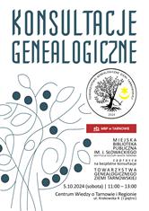 Miejska Biblioteka Publiczna w Tarnowie zaprasza zainteresowanych dziejami swojej rodziny na pierwsze konsultacje genealogiczne. Konsultacje odbędą się w w sobotę, 5 października, w godzinach 11.00-13.00 w Centrum Wiedzy o Tarnowie i Regionie przy ulicy Krakowskiej 4. Członkowie Towarzystwa Genealogicznego Ziemi Tarnowskiej będą do dyspozycji wszystkich, którzy potrzebują porady i fachowego wsparcia w badaniu historii swojej rodziny.