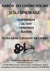 W najbliższy piątek, 17 stycznia, w Centrum Kształcenia i Wychowania Ochotniczych Hufców Pracy przy ulicy Mościckiego 27 w Tarnowie odbędą się przesłuchania do SOLski Chór. Początek o godzinie 17.00. - Jeśli lubisz śpiewać i sprawia Ci to radość, na dodatek odnajdujesz się w większych grupach, zapraszamy na przesłuchanie. Jeśli śpiewasz sopranem, altem, tenorem lub basem to właśnie czekamy na Ciebie – zapraszają do wstąpienia do chóru członkowie SOLski Chór.