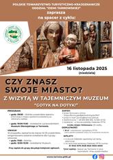 Czy znasz swoje miasto to tytuł cyklu spacerów organizowanych przez PPTK Oddział Ziemi Tarnowskiej. Kolejny spacer odbędzie się w niedzielę, 16 listopada i przebiegał będzie pod hasłem „Z wizytą w tajemniczym muzeum. Gotyk na dotyk!”. Tym razem uczestnicy zwiedzą wraz z przewodnikiem Muzeum Diecezjalne. Zwiedzanie rozpocznie sie o godzinie 10.00 i potrwa mniej więcej do godziny 11.30. Jeśli chętnych będzie wielu, przewidziano utworzenie drugiej grupy, która rozpocznie spacer po muzeum o godzinie 12.00.