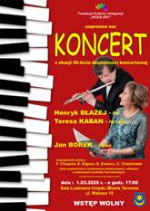 W niedzielę, 1 marca, w Sali Lustrzanej w Tarnowie o godzinie 17.00 rozpocznie się koncert z okazji 50-lecia działalności koncertowej Teresy Kaban – fortepian i Henryka Błażeja – flet. Wstęp wolny.