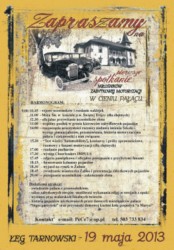 Na niedzielę 19 maja zaplanowano Pierwsze Spotkanie Miłośników Zabytkowej Motoryzacji w Cieniu Pałacu. Spodziewać się można kilkudziesięciu samochodów, które wyróżnia wiek i uroda, a które oglądać będzie można przez całe popołudnie w Łęgu Tarnowskim, a wieczorem na rynku w Żabnie.